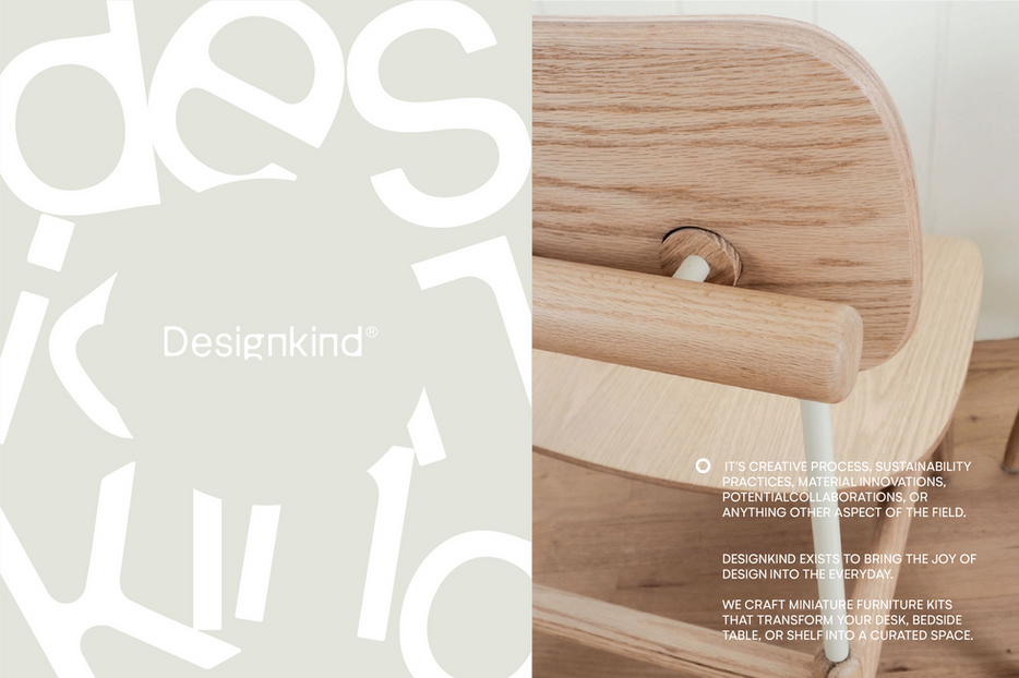 Designkind is a creative brand that brings modern, small-scale furniture builds to life for makers, dreamers, and design enthusiasts. I partnered with their team to develop a full visual identity that reflects their playful yet refined approach—from the logo and typography to the color palette, packaging, and web mockups. The branding captures their spirit of craftsmanship and community, giving Designkind a cohesive and inspiring look that connects with creatives and like-minded people.
